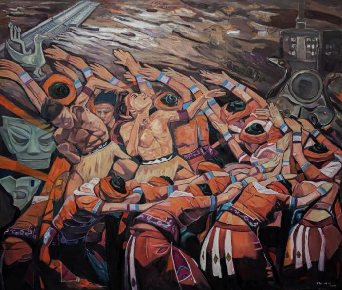 油画《长江潮——母亲河》。尺寸:180cm*210cm