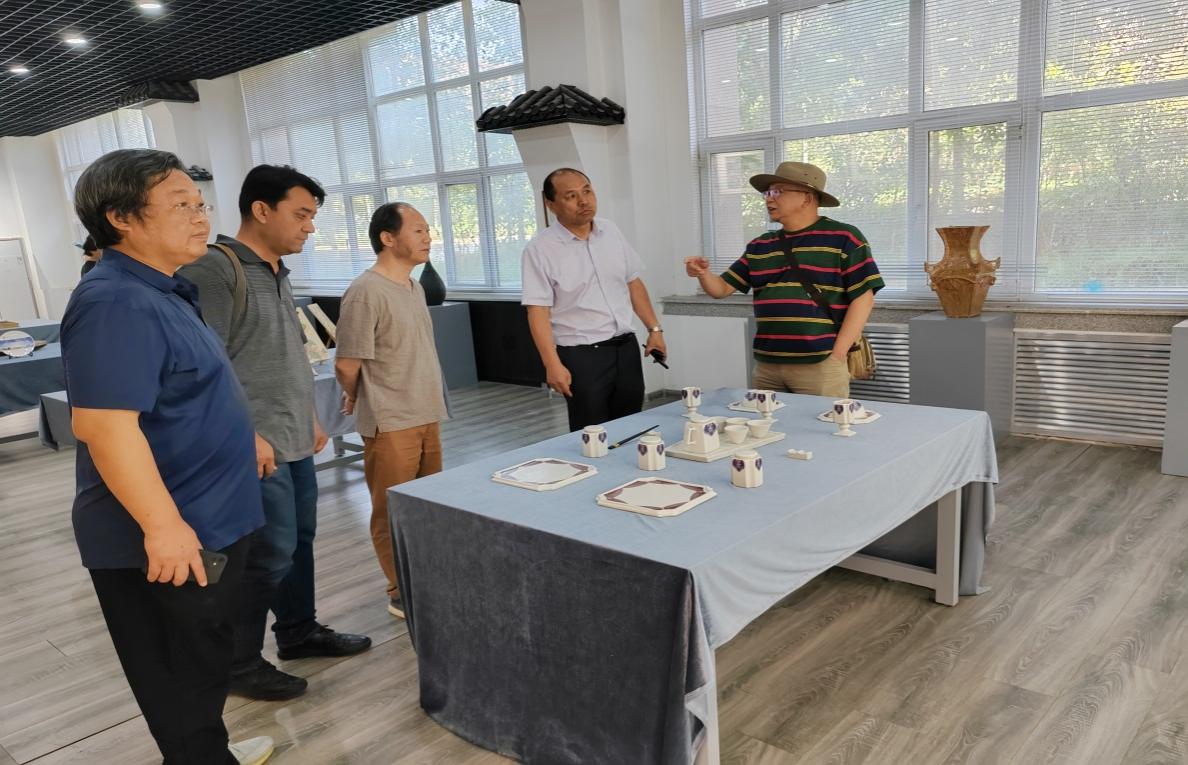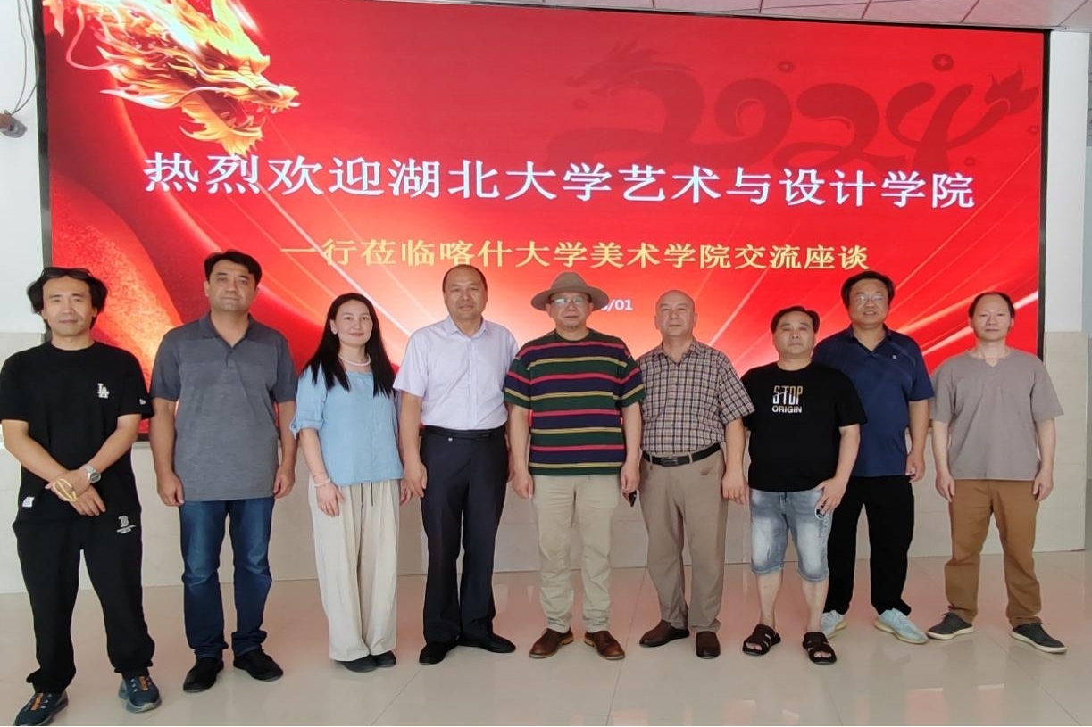 2024年8月1日,艺术与设计学院副院长尹朝阳教授、谭崇正教授、杨帆教授,师范学院艾麦提江博士、通识教育学院约麦日古丽老师等一行到喀什大学美术学院调研交流。喀什大学美术学院党委书记宋宝强等领导及相关教师出席座谈会。