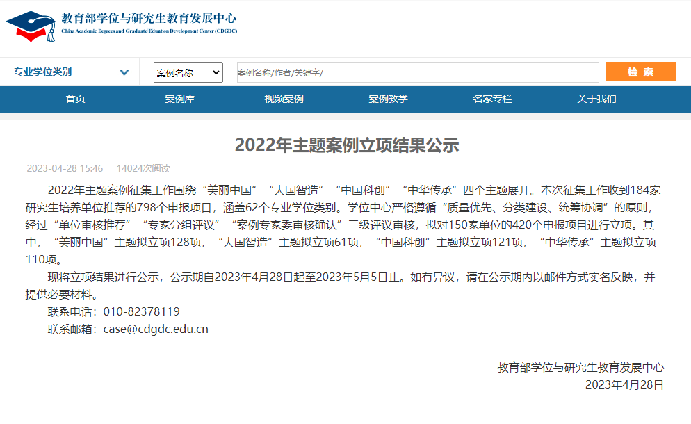 这是学院继去年孔德巍副教授获批2022年度“中国专业学位案例中心”主题案例立项(《传承中华文化:屈家岭国家考古遗址公园文化资源数字化保护与活化利用》)后,再度入选中国专业学位教学案例。