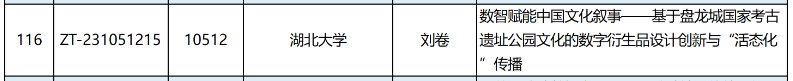 2024年3月23日,教育部学位与研究生教育发展中心发布了“中国专业学位案例中心”2023年主题案例立项结果,我院刘卷教授主持的《数智赋能中国文化叙事——基于盘龙城国家考古遗址公园文化的数字衍生品设计创新与“活态化”传播》案例成功获批立项。