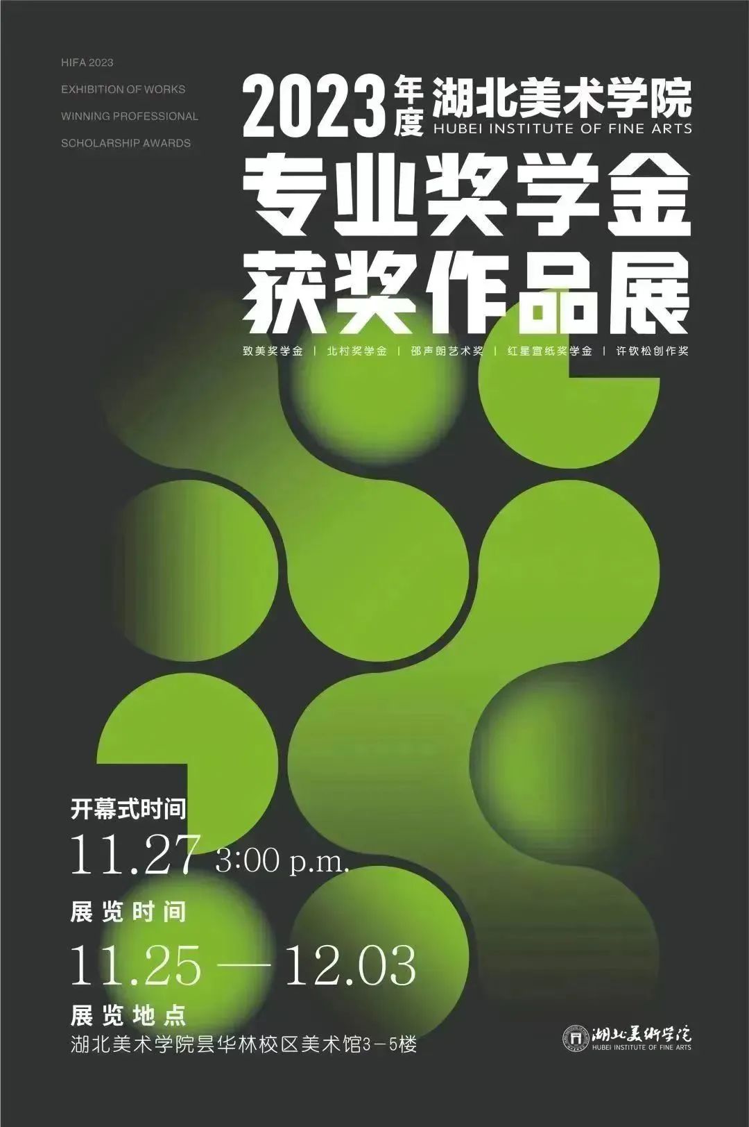 致美奖学金由湖北美术学院、湖北省美术家协会主办。经过多年建设与发展,致美奖学金的影响力不断扩大,对促进不同专业的探索变革、交叉融合以及推动学校的人才培养和专业建设具有深远意义。