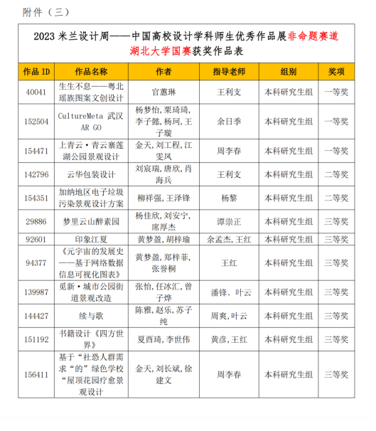 原文链接:我校在中国高校设计学科师生优秀作品展获佳绩-湖北大学新闻网 (hubu.edu.cn)