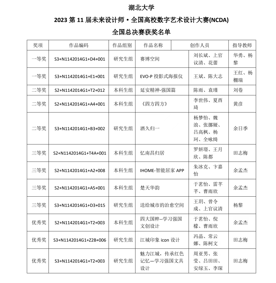 湖北大学新闻网:《湖大团队在全国高校数字艺术设计大赛获2项一等奖》