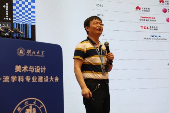 何人可教授做《产学研合作背景下的设计教育》的主题演讲