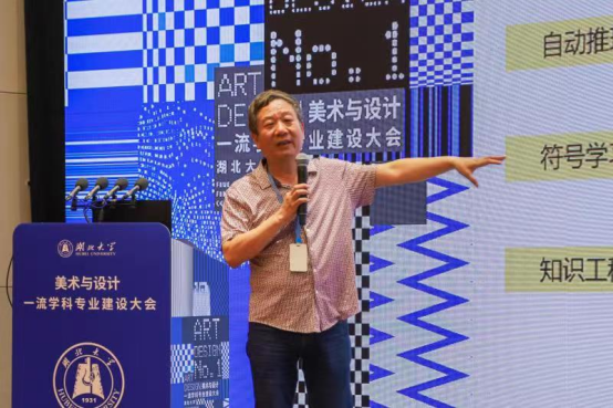 湖南大学资深教授、湖南大学设计艺术学院原院长、教育部高等学校工业设计专业教学指导分委员会主任委员何人可教授,中国传媒大学动画与数字艺术学院党委书记、教育部高等学校动画与数字媒体教学指导委员会秘书长黄心渊教授,武汉理工大学学科首席教授、武汉理工大学人文学部部长、首席教授、教育部设计教学指导委员会委员潘长学教授,四川大学艺术研究院院长、四川美术学院艺术人文学院院长、教育部高校美术专业教指委委员黄宗贤教授,浙江大学宁波科创中心国际合作设计分院院长、浙大宁波理工学院设计学院院长罗仕鉴教授,美国威斯康星大学密尔沃基分校帕克艺术学院Kevin Schlei副教授,浪尖设计集团有限公司董事长兼总裁、中国工业设计协会常务理事、广东省工业设计协会副会长罗成,华中科技大学建筑与城市规划学院副院长、教育部高等学校动画与数字媒体教学指导委员会委员蔡新元教授,湖北大学艺术学院院长、全国高校美育教学指导委员会委员、湖北省美术家协会副主席许开强,分别作题为《产学研合作背景下的设计教育 》、《人工智能的发展与应用》、《综合性大学设计教育的产教融合实践》、《新时代美术、设计“双一流”建设何能何为》、《群智创新设计》、《创意 APP 设计:一个真实生命的发展进程》、《打造“中国设计”品牌 赋能高质量发展——浪尖对工业设计的思考和实践》、《奇点:AI风暴中艺术设计学科思考》、《中国式现代化背景下设计文化的力量与传播》的主旨报告。