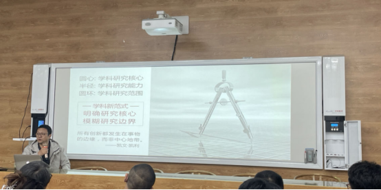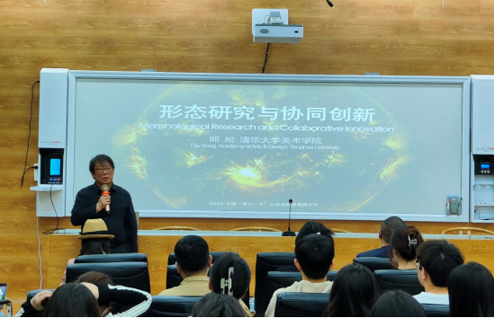 为深入开展艺术学院学习贯彻习近平新时代中国特色社会主义思想主题教育读书班活动,学习艺术设计学科前沿发展形势,5月6日下午,清华大学美术学院教授、博士生导师邱松应邀来到我院,为师生带来一场题为“形态研究与协同创新”的主题讲座。讲座在艺术学院C201会议室进行,由院长许开强教授主持,学院师生代表参加了本次学术活动。