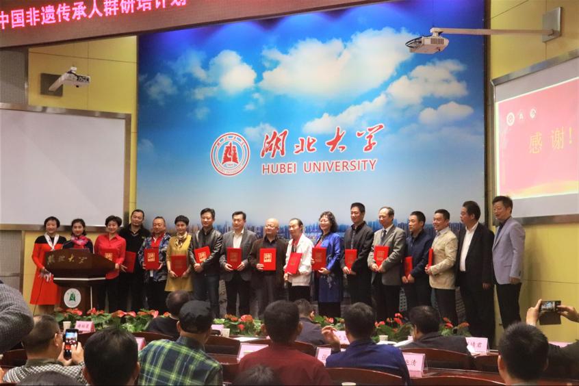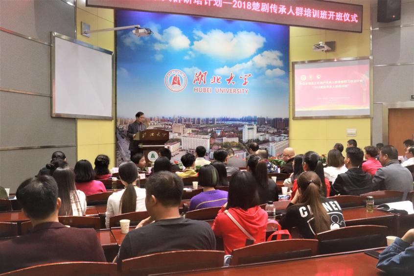 2018年10月29日,中国非物质文化遗产传承人群研修研习培训计划—“2018楚剧传承人群培训班”开班仪式在我校思诚厅举行。湖北大学党委书记尚钢,湖北省文化厅非物遗处有关负责同志,湖北大学艺术学院院领导黄家发书记,湖北大学校办柯志坚主任、社科处处长邵俊青、学工部部长刘靖君、团委书记万路路,继续教育学院副院长何兆清,以及来自中国戏曲学院、华中师范大学等高校和专业剧团的任课教师代表近20人、培训班的50名学员,参与了此次开班典礼,艺术学院副院长华勇教授主持会议。