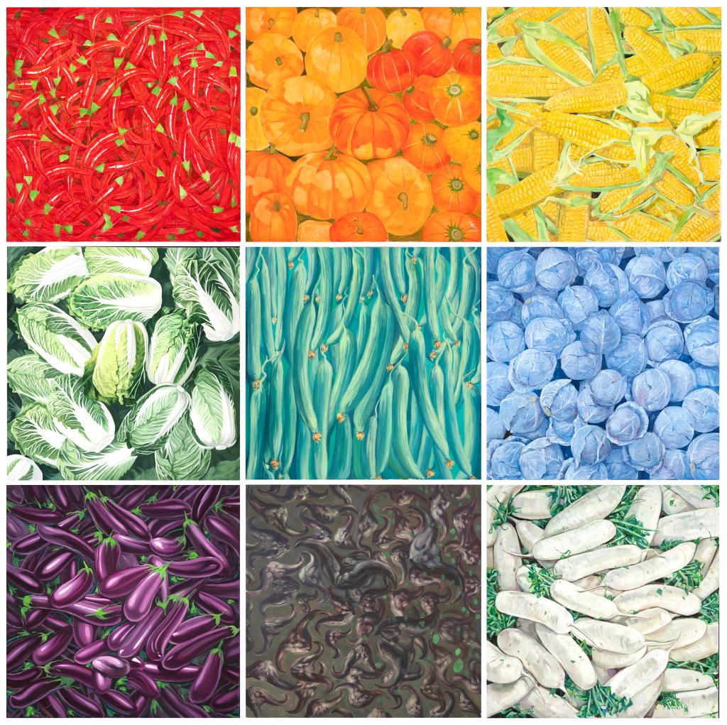 艺术学院李碧红教授的《丰硕的色彩——以果实油画看乡村振兴》项目是国家艺术基金2022年度美术创作资助项目,历时两年创作完成。该项目是以乡土“果实”为核心载体,创作多幅油画,侧重于对田间和菜地里“接地气”的“土”果实,通过写实与写意相结合的技法方式,按照10种主体色创作15幅果实作品,展现新时代脱贫致富和乡村振兴的“多彩生活”。该系列画作视角独特,将蔬果变成一种符号植入人心,体现了艺术语言新的高度。