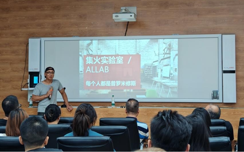 讲座伊始,湖北大学艺术与设计学院龙元教授向刘洋先生的到来表示热烈欢迎。讲座中刘洋先生围绕着城市自主更新的模式与机制进行系列性讨论,指出城市更新与空间营造其核心是如何构建人与人之间的包容性关系,使得老旧建筑重新焕发活力,这都需要超越建筑设计本身来进行一场社区设计。他常常将战略架构和微观实践相融合,基于“弱势规划”“空间共和”“临时建筑”“廉价美学”“重建常识”的信念,实践“社会设计”的空间社会学的方法论,从个体建设、社区营造、消费重塑、发展伦理等多个维度,探索中国当代城乡景观的生产和社会空间内容的再生产,为当下中国城市化现场提供独特的声音。