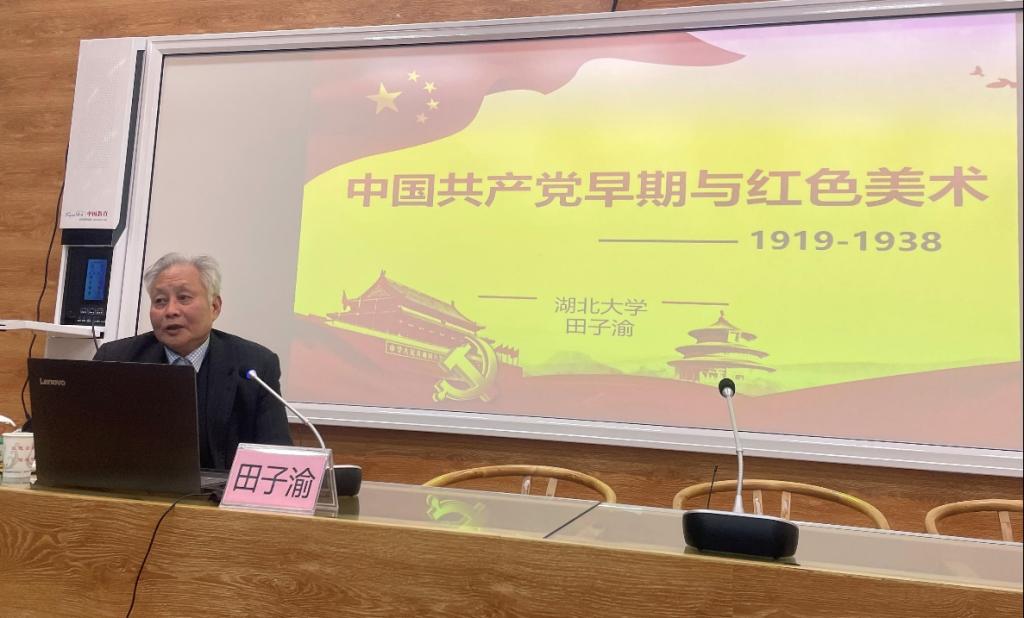 2021年3月31日下午,校党史宣讲团成员、马克思主义学院田子渝教授应邀为艺术学院师生作了题为“中国共产党早期与红色美术”的党史学习教育报告,报告会由院党委书记叶秀娟主持,学院全体教职工、学生骨干参加了报告会。