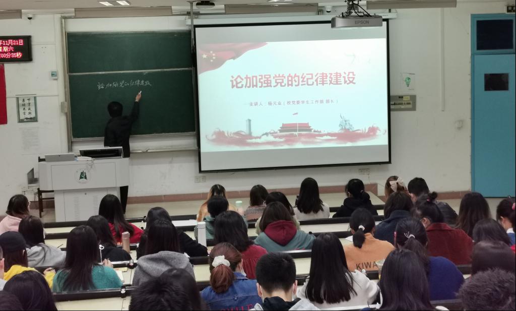 11月21日上午,校党委学生工作部部长杨元业以“论加强党的纪律建设”为题作首场报告。报告会上,他首先明确了何为党的纪律,以及纪律存在的重要性。对于党的纪律,首要的要求是严格遵守党规党法,其次是作为党员,要做好自我规范以及互相监督,维护党组织秩序。同时强调,党的纪律建设是十分必要的,而且是一个系统化、制度化、科学化的过程。加强党的纪律建设是中国共产党在革命中总结出来的重要经验。接着,杨元业部长介绍了从中国共产党第一次全国代表大会一直到中国共产党第十九次全国代表大会,中国共产党面对不同的困难以及内部矛盾,展示了中国共产党不断通过加强党的纪律建设解决问题、防范党员行为不端的历史征程。因此,只有加强党的纪律建设才能巩固党的地位、更好地提升党的执政能力,造福国家与人民。最后,他对所有发展对象培训班学员提出要求,每个人都要做到按照党员的标准自我约束,自我优化。