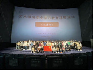 为推进党史学习教育走深走实,促进广大党员锤炼党性修养,10月27日下午,艺术学院党委委员及师生党员代表共130余人,在绿地缤纷城巨幕影院开展党史学习教育观影活动,观看革命战争题材电影《长津湖》,以期通过此次观影活动激发学院党员的党史学习教育热情、自觉传承红色基因,回望峥嵘岁月,赓续初心使命。