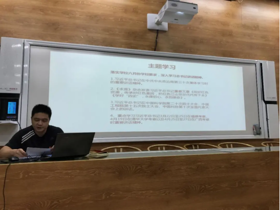 支部书记刘卷老师讲题为《红色革命故事:“敢为人先、百折不挠”——“南昌起义”与“八一精神”》党课。刘卷书记以一幅油画、一幢旧址、一封书笺、一盏马灯、一条红领带、一份刊物为主线讲述“南昌起义”的过程,诠释筚路蓝缕的革命之路,“南昌起义”承载着坚定不移的革命信念,及其彰显着代代相传的初心使命。并强调“南昌起义”与“八一精神”的永恒价值,及革命先驱敢为人先、百折不挠,勇于探索、拼搏的精神。勉励党员们通过学习一个个鲜活的革命故事,牢记党的信念,深谙学习党史的重要意义,在今后的工作学习中勇于克服困难,不畏艰险,将红色革命精神发扬光大。