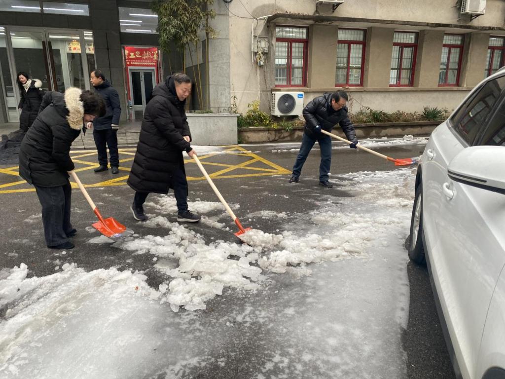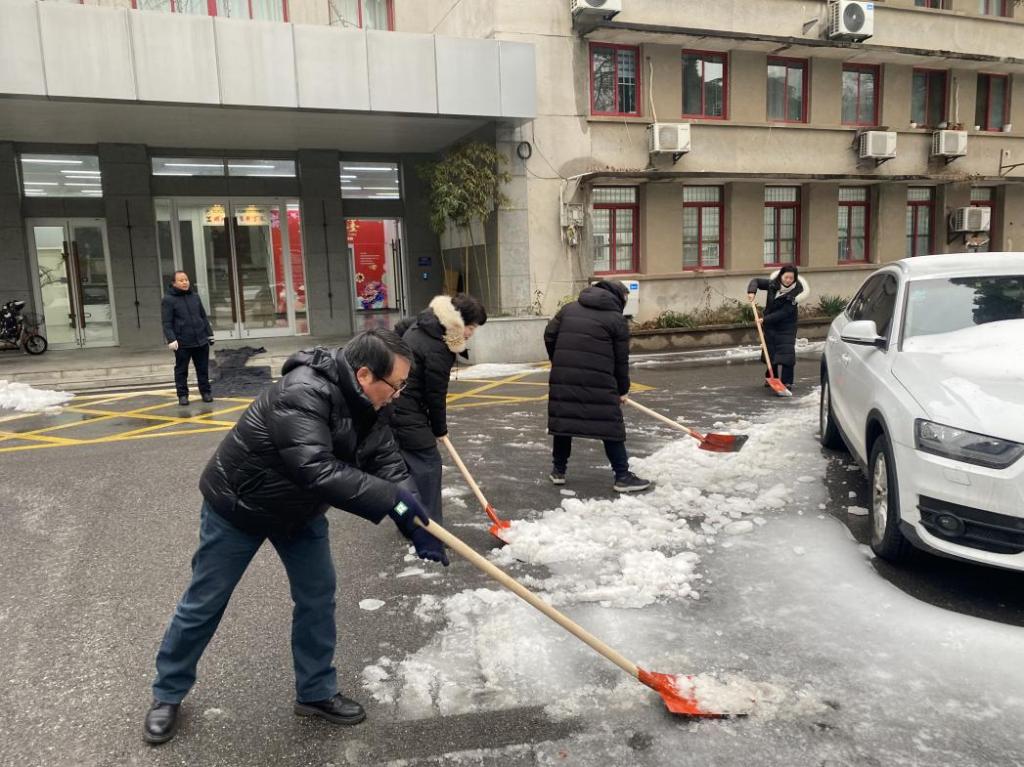 为了确保师生开学正常教学生活,让师生出行更加方便,学院领导班子和教师共同行动,铲除门口路面积雪。在学院领导班子的带领下,大家分工明确,有的使用铁锹、扫帚等工具清理道路上的积雪,有的负责清理转运积雪。领导班子和教师通力合作,克服恶劣天气影响,清除学院主干道积雪,为新学期开学做好充分准备。