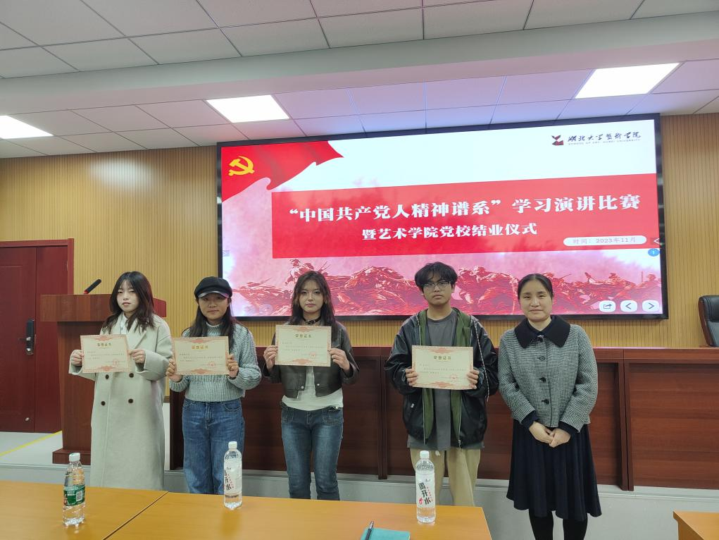 11月24日晚,艺术学院举办“中国共产党人精神谱系”学习演讲比赛暨党校结业仪式,仪式由辅导员周冰雷主持,院党委副书记崔露、辅导员徐锦、物电学院辅导员黄山以及发展对象培训班、入党积极分子培训班全体成员参加活动。
