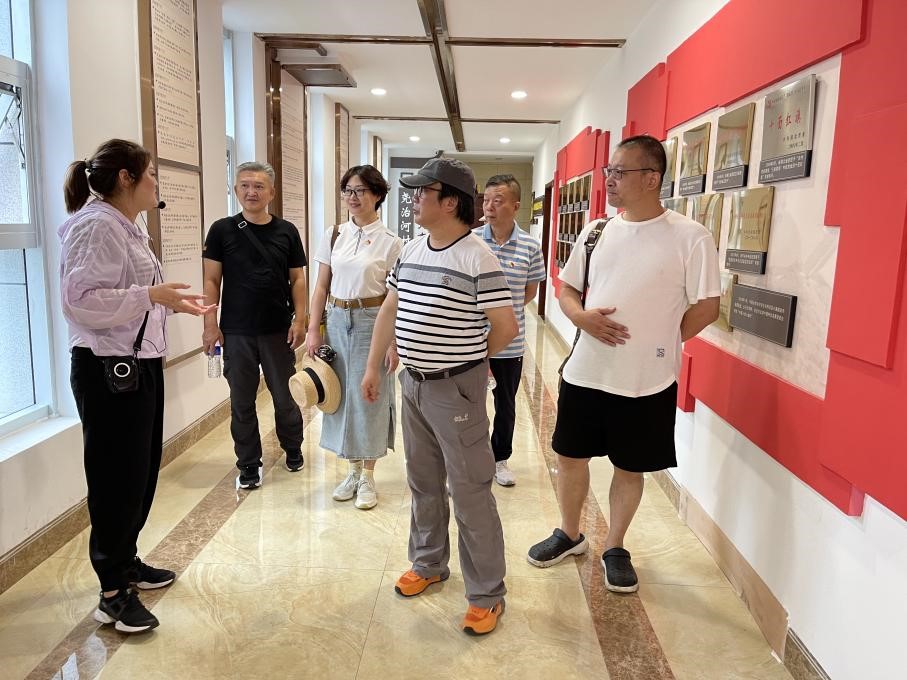 研学活动在嘹亮的国歌声中拉开帷幕,艺术学院党委叶秀娟带领党员教师面向党旗,重温入党誓词,提振精神、坚定信念。尧治河集团党委委员龚丽为学院教工党员讲授尧治河村发展史专题党课,尧治河村开山掘矿、克险筑坝、脱贫攻坚、共同富裕的发展历程,靠的是以孙开林领导下的党委组织“党员能吃苦、党员能吃亏、党员能奉献”的作风、“实施党建引领、发展集体经济、实现共同富裕”的理念和“依靠老百姓、惠及老百姓”的初心。