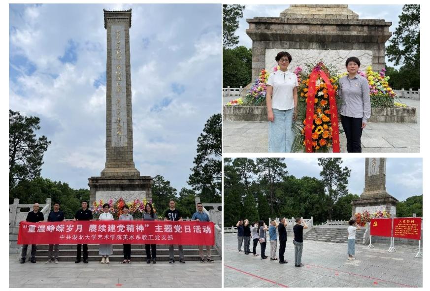 为庆祝建党102 周年,深入贯彻主题教育“学思想、强党性、重实践、建新功”的总要求,弘扬建党精神,传承红色基因,7月8日,学院美术系教工党支部全体党员赴麻城红色教育基地麻城烈士陵园、鄂豫皖红军发展史陈列馆、大别山红廉文化馆、乘马会馆开展“重温峥嵘岁月 赓续建党精神”主题党日活动。