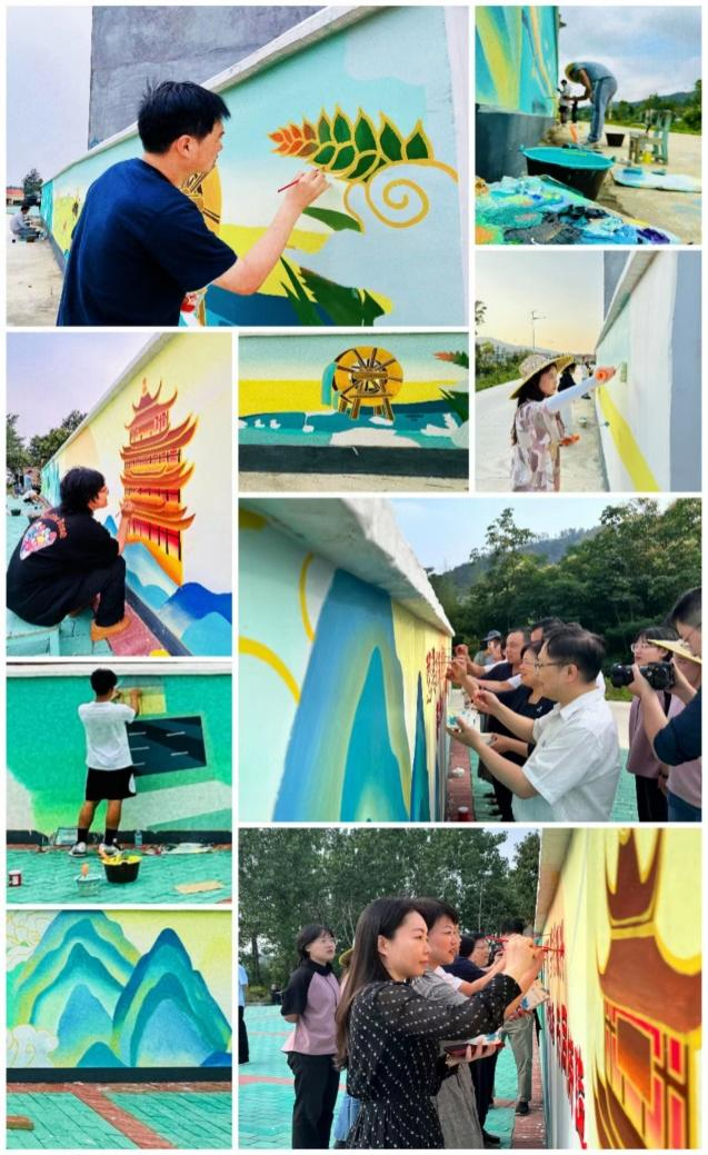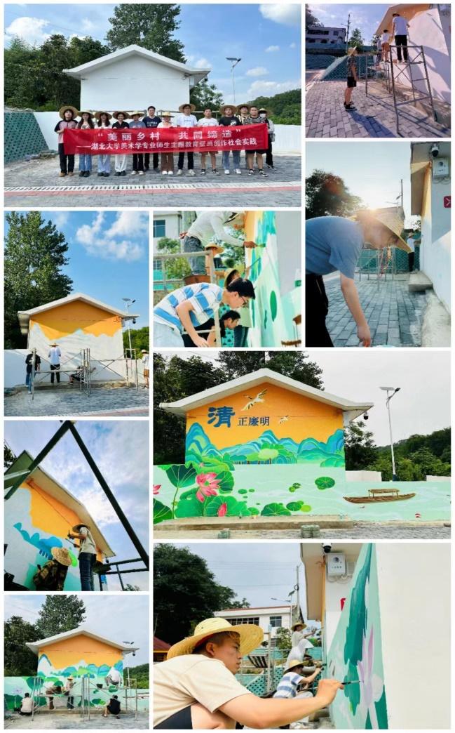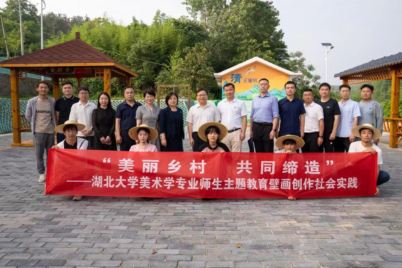 为贯彻落实湖北省委省政府乡村振兴战略,在乡村建设、农村人居环境整治中深入推进美好环境与幸福生活共同缔造活动,省委政研室(省委改革办、省委财经办)携手湖北大学在团风县马曹庙镇开展党建共建活动。2023年6月1日—6月6日,湖北大学艺术学院美术学专业师生一行20余人共赴朝阳山村开展“美丽乡村 共同缔造”主题教育壁画创作社会实践。