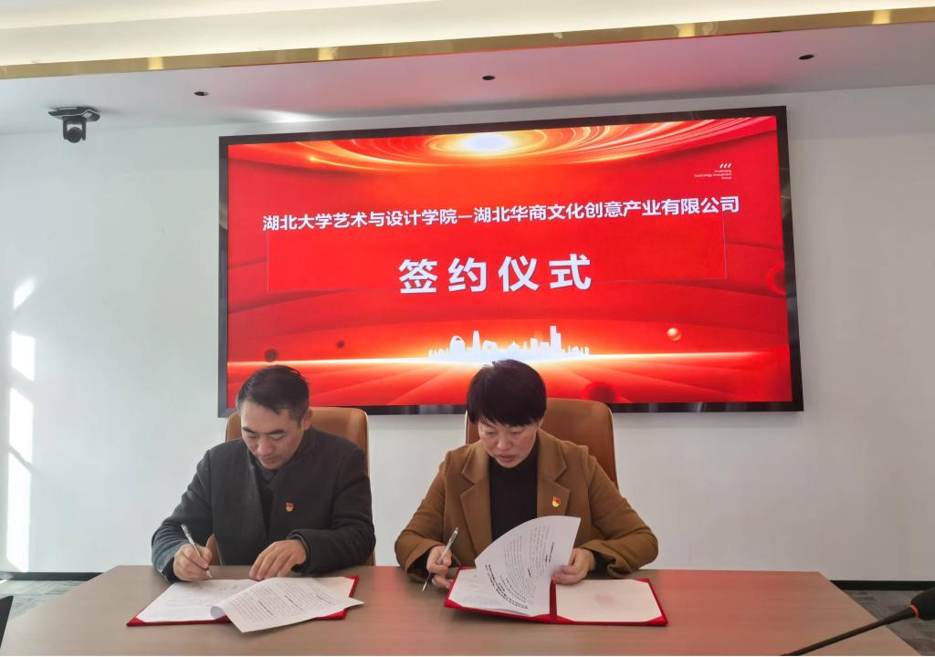 为深化党建引领下的产学研合作,让师生在深度合作中提能力、出成果,湖北大学艺术与设计学院联合武汉文创大厦,开展“湖北大学艺术与设计学院与武汉文创大厦党建联创联建倡议书”签约仪式、“艺术与设计类学生实习实践基地”授牌仪式。武汉文创大厦项目总经理谭勇与叶秀娟书记共同签订了合作倡议书,副院长潘锋为武汉文创大厦授牌。