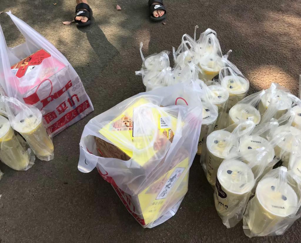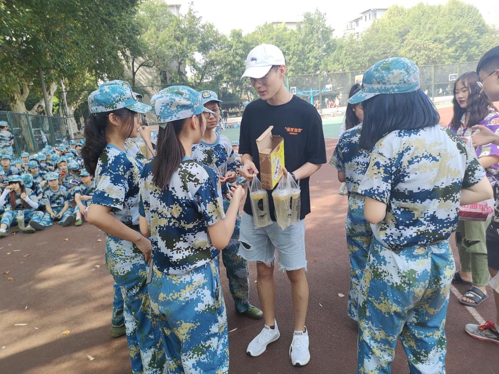 次日上午,18级新生们在炎热中辛苦地军训,作为学长学姐,各个学生组织的部长们也不忘照例去看望新生们,为大家送去去暑饮料。