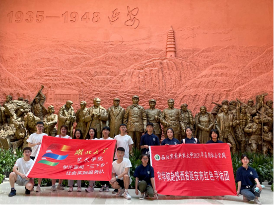 为了更加深刻学习和理解革命精神与红色文化,贯彻落实习近平总书记提出的两个一百年的奋斗目标。2021年7月5日至10日,湖北大学艺术学院赴延安探索窑洞特色红色文化项目实践团队前往延安开展暑期“三下乡”社会实践活动。此次实践考察分别前往了延安革命纪念馆、枣园革命旧址、杨家岭革命旧址、凤凰山革命旧址以及枣园村等地。同学们对纪念馆内展出的大量珍贵的历史文献、图表、照片等资料进行了系统的学习。在当地开展社会实践学习的同时,不仅了解了当地的民俗文化,也见证了中国共产党一路以来的光辉历程。