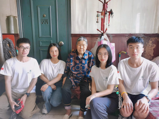 图为团队成员在枣园村与中共老党员朱玉兰奶奶(左三)合影留念。