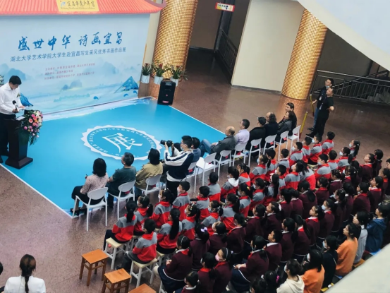 宜昌市青少年宫主任田明政介绍了此次活动的基本情况,向为本次画展提供优秀作品并给予大力支持的湖北大学艺术学院师生表示诚挚的谢意。