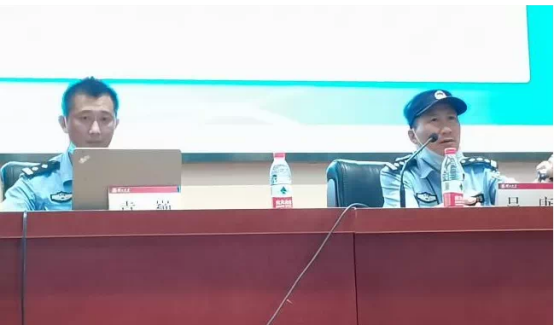 讲座开始,吕警官结合校园安全问题,围绕“人、财、物”三方面做了简单介绍,倡导同学们保护好自身安全、保管好自身财务。他告诉同学们,在校期间除了学习书本上的知识以外,还要学习法律知识,做到知法、守法、学法、用法。