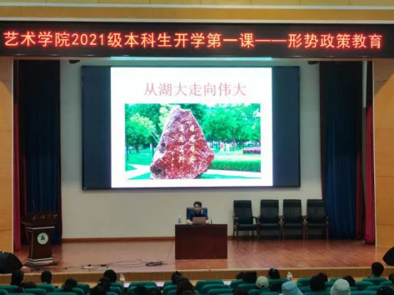 10月4日下午,视觉传达设计系系主任杨高钰副教授带领视觉传达专业、产品设计专业的师生代表,在三号楼学术报告厅为2021级设计学新生开展“开学第一课”——专业思想教育活动。