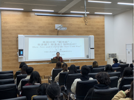 11月26日上午,中国人民大学副研究员、中国对外战略研究中心主任助理、中国人民大学国际能源战略研究中心研究部主任、历史文化学院校友王鹏老师作客我院,为我院学生代表主讲国际关系热点问题。王老师主讲的题目是《中美“新冷战”:概念辨析、历史比较与研判应对》,先由中美“新冷战”这一话题导入,从政治学、国际关系学等概念分析了“冷战”的四大核心特征,进而概括中美“新冷战”的形式及特点。随后,王老师梳理了美国对华战略的演进逻辑,并指出其战略意图和战术特点。最后,王老师结合当前的形势分析,探讨了当前中国面临的机遇和挑战,从双循环、话语层面、周边层面等多个层次提出了中国应对的政策思考。王老师的讲述深入浅出、热情生动,并且列举了历史上和当前众多国家之间的国际关系案例,不仅使同学们能更深刻地认识中美关系,同时也对历史背景、国际形势有了更深入的了解。