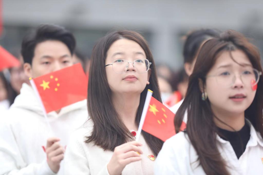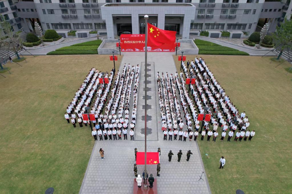 最后,升旗仪式在合唱节目《我和我的祖国》中结束,师生们用歌声献礼祖国,祝福祖国繁荣昌盛、国泰民安。