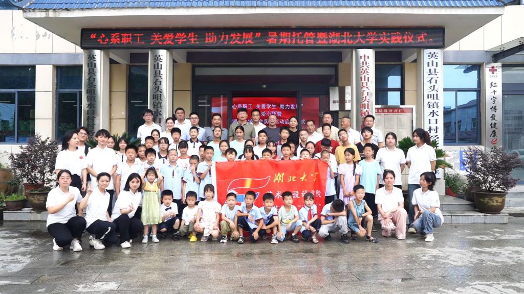 7月11日,由黄冈市英山县人大常委会办公室、英山县总工会、英山县石头咀镇人民政府、湖北大学艺术与设计学院主办的“心系职工 关爱学生 助力发展”暑期爱心托管暨湖北大学社会实践活动启动仪式在英山县石头咀镇水口村举行,来自湖北大学艺术与设计学院的社会实践服务队相关负责人和学生代表分别进行了致辞和发言,还为托管班内的孩子赠送了书包等学习用品。