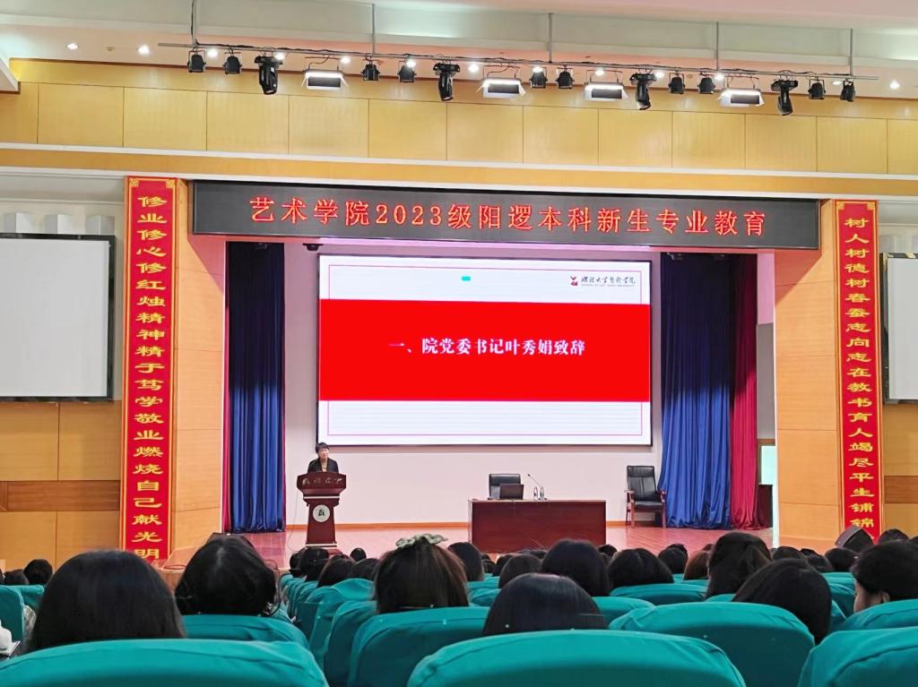11月19日,2023级阳逻本科生新生专业教育暨“美美与共——湖北大学艺术学院美育开放日”活动在三号楼学术报告厅拉开帷幕。院党委书记叶秀娟致欢迎辞,院长许开强教授作学院整体情况介绍和学生发展指导,活动由院党委副书记崔露主持。