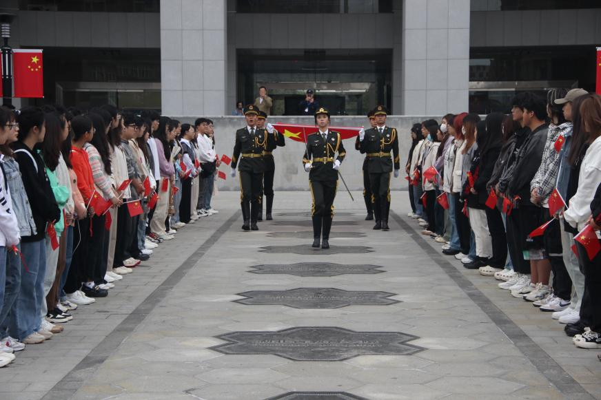10月9日,学校在思睿广场举办十月升国旗仪式暨“文化自信自强,讲好中国故事”国旗下的思政课,校党委副书记侯勇,学生工作部全体成员、全校辅导员,以及艺术学院、文学院班子成员、师生代表参加了此次升旗仪式。