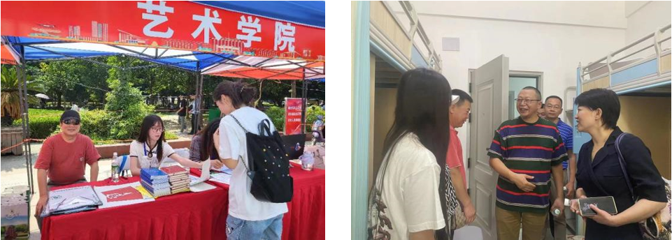 9月9日—10日,初秋的骄阳热情似火,艺术学院344名本科新生、100名研究生新生在学院师生志愿者的热情引导下,分别在阳逻校区和校本部办理了入学手续,迈入在湖北大学期间的学习新阶段。院党委书记叶秀娟、许开强带领学院领导班子成员、系部主任、辅导员、研究生秘书在迎新点看望新生,并进入寝室进行了慰问。