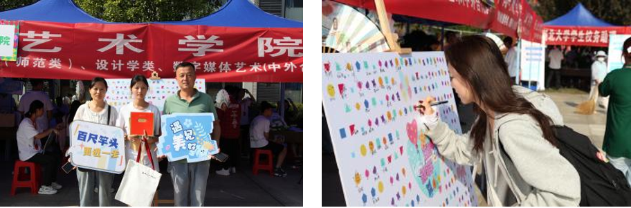 虽然迎新工作的两天天气炎热,由艺院老师和学长学姐们组成的迎新志愿者队伍始终坚守在新生手续办理服务台。不管是对开学报道流程的咨询,还是对学习住宿环境的提问,志愿者们都会一一解答。新生同学在学院留言板上签下了自己的名字,留下了可爱的手绘表情包和对湖大生活的展望,现场的志愿者为新生和家长拍下了人生难忘一刻的照片。