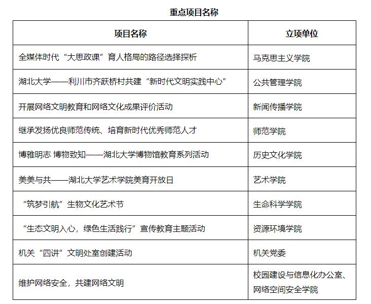 近日,学校公布2023年度校级精神文明建设活动项目立项结果,艺术学院《美美与共——湖北大学艺术学院美育开放日》获评重点项目。据悉,为进一步提升我校精神文明建设水平,扎实有效推进湖北省文明校园再创工作,学校开展了2023年度精神文明建设项目立项申报工作。自活动开展以来,艺术学院党委积极组织,基础课部认真申报,向学校提交材料。经专家评审,共有校级立项重点项目10项、一般项目7项。