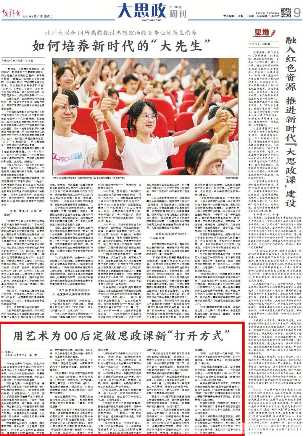 (原文链接:【中国青年报】用艺术为00后定做思政课新“打开方式”-湖北大学 (hubu.edu.cn))