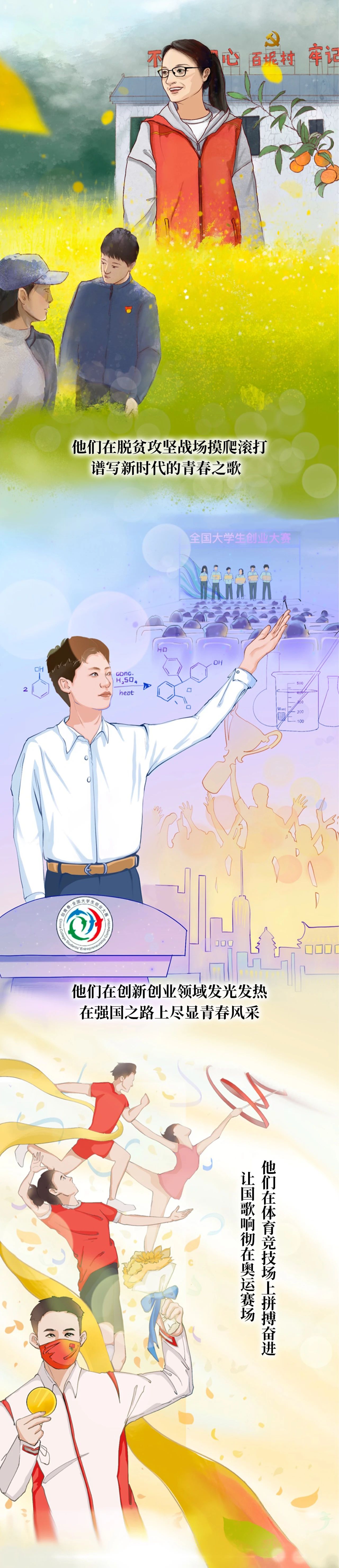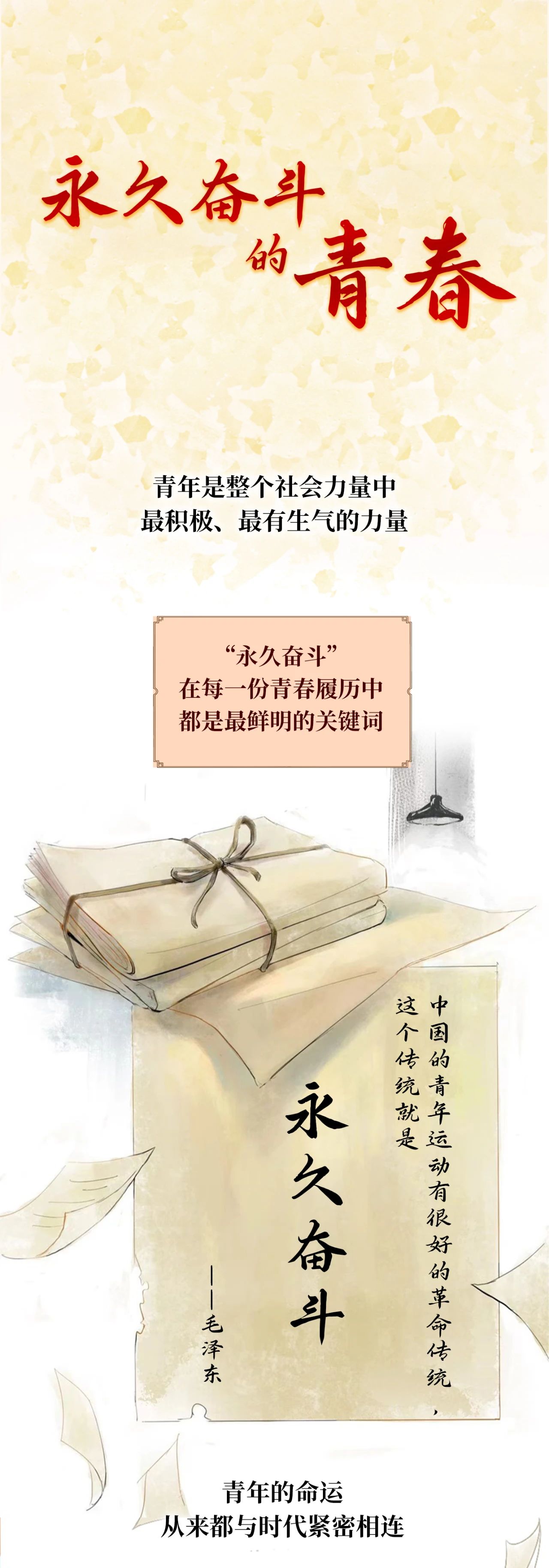 2023年五四前夕,共青团湖北省委员会组织筹备创作五四条漫,经湖北大学团委推荐,艺术学院2022级学生负责本次创作。辅导员潘念第一时间组织选拔,成立漫画创作团队,历经集中研讨、小组分工、画面构思、线稿创作、颜色晕染、排版布局、统筹修改等阶段,18位学生参与其中,最终完成条漫《永久奋斗的青春》,于2023年5月4日在“青春湖北”公众号平台发布。