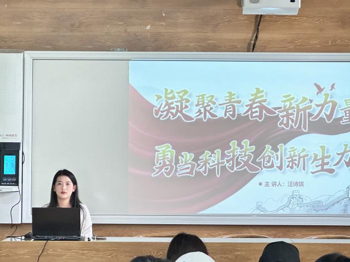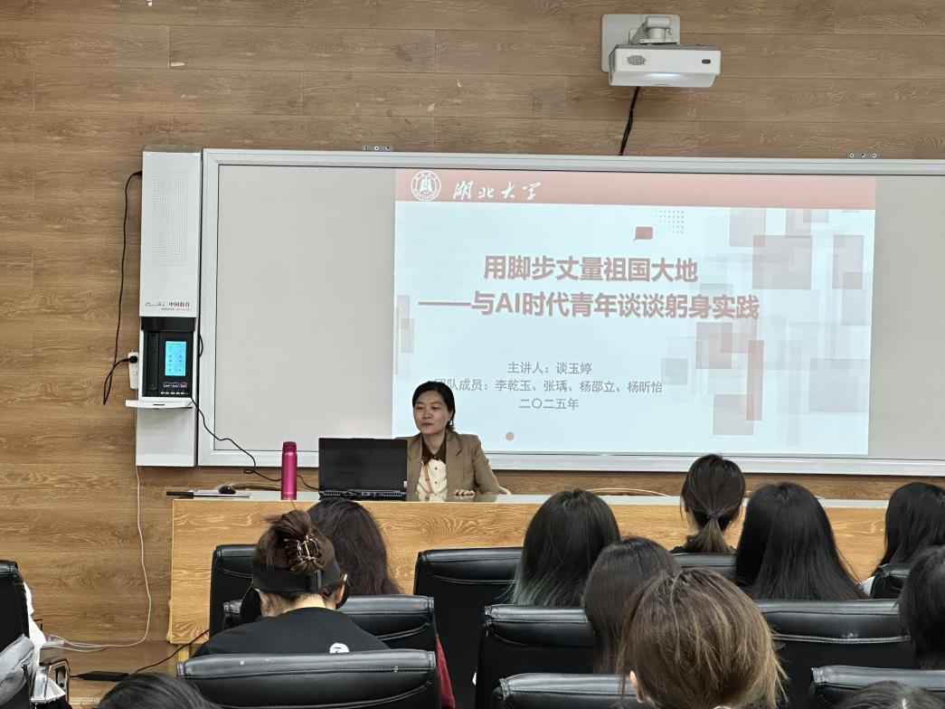 院党委副书记谈玉婷老师以《用脚步丈量祖国大地--与AI时代青年谈谈躬身实践》为主题,强调青年应当在实践中提升自己的能力,顺应时代发展潮流,“知行合一”等。谈玉婷老师向同学们寄予厚望,希望同学们坚定信念、积极实践、敢于创新。
