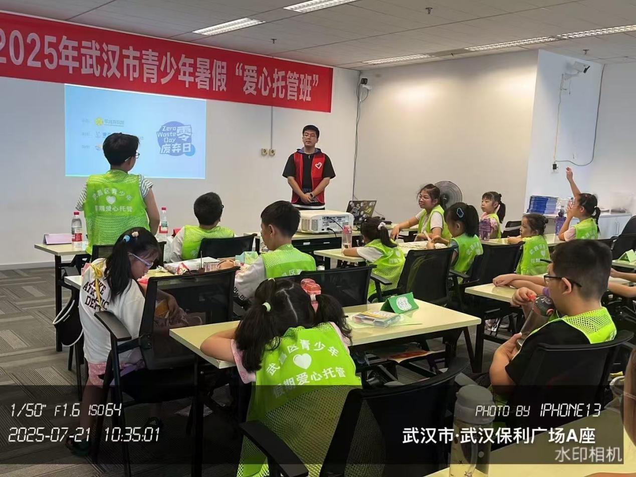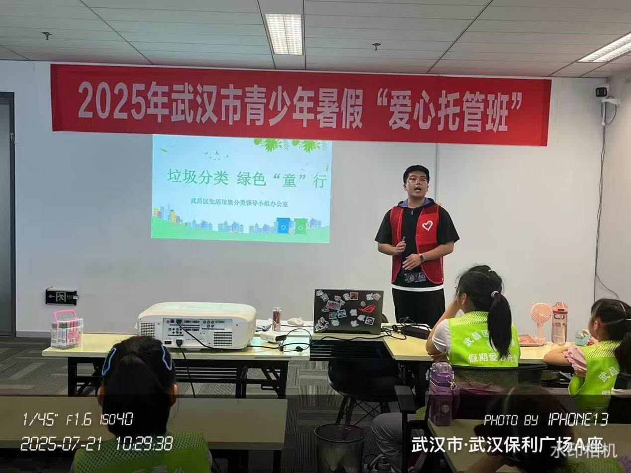 2025年7月21日,武汉保利广场A座的武汉市青少年暑假“爱心托管班”内,湖北大学艺术与设计学院艺术梦工厂的2名志愿者,将专业所长与环保理念深度融合,为20余名托管班儿童打造了一堂别开生面的“趣味环保实践课”。作为学院“暑期公益课堂计划”的重要实践模块,本次活动通过“可视化教学+沉浸式互动”模式,让环保知识“活”起来,更让大学生在服务中践行社会责任,实现“教学相长”的实践育人目标。