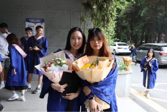 随后,2021 届毕业研究生代表邓伊铃同学在发言中认为,从三年前收到录取通知书到今天我们身着硕士服,收获的不仅是专业知识的积淀,更多的是在老师们的言传身教中,学会了用尊重世界的态度和独立思考能力来提升专业素养。她十分感激导师和学院给研究生们提供了更多的学习机会,如参加不同的艺术展,分享案例与设计经验等,培养了大家的设计思维。希望同学们不忘初心,奋力拼搏。