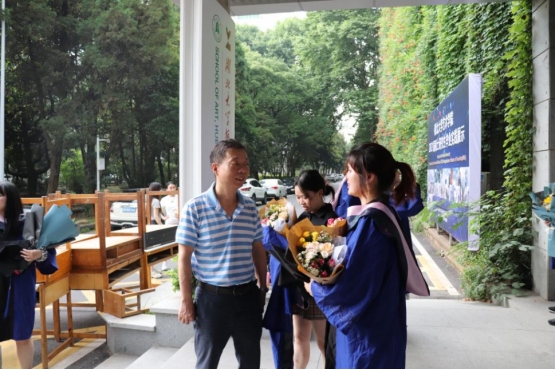 艺术学院导师代表谭崇正老师在致辞中谈到,人生是不断学习的过程,一要有梦想、不忘初心,二要踏实肯干、勇于创新,三要终身学习、懂得合作。只有学习才不会被社会淘汰,要有梦想的前行,要勤奋踏实的干,要合作创新提升综合能力。他希望同学们记得回学校看看,并祝福大家,迎着朝阳,扬帆远航,一路平安,打造属于自己的精彩的人生。