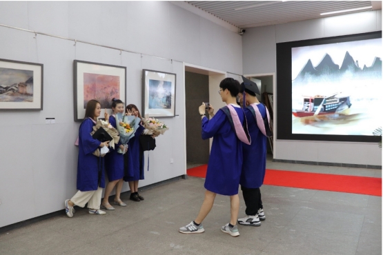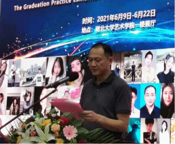 最后,湖北大学副校长蒋涛教授讲话并宣布展览开幕。他首先对同学们的顺利毕业表示了衷心的祝贺,祝贺大家开启新的人生旅途。他指出,今年四月,习近平总书记在考察清华大学美术学院时做出了重要讲话,美术、艺术、科学、技术相辅相成、相互促进,要发挥美术在服务经济社会发展作用,把更多的美术、艺术发挥到城乡规划当中,增强城乡审美定位、文化品位,把美术成果更好的服务于人民群众。蒋涛副校长对参展同学们的美术和艺术设计作品给予了高度肯定,并感谢导师们的辛勤付出。他也对同学们提出了殷切期望,希望同学们以博学之姿,穷理之心,深入生活,革故鼎新,高高山上望,深深海底行,不懈追寻人生至善与艺术至美。