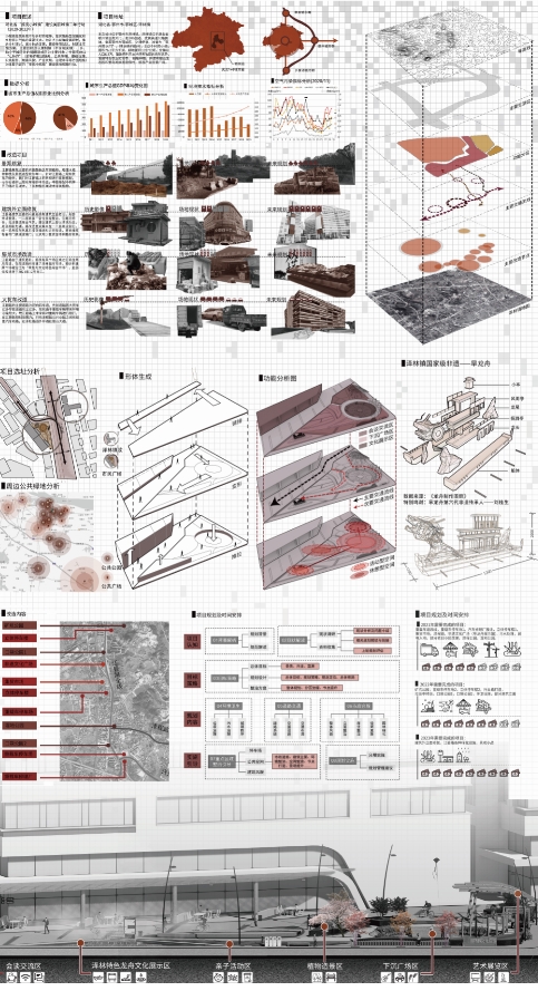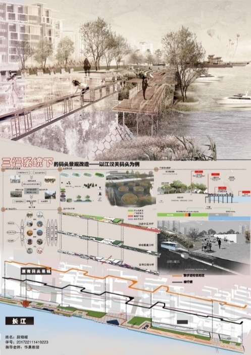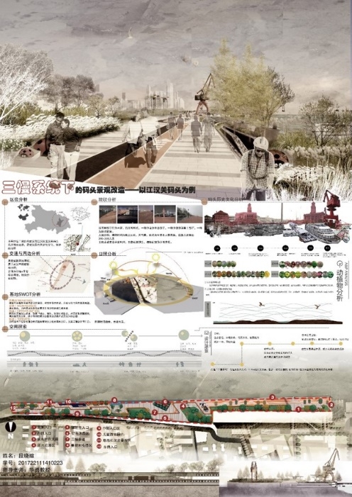 该案以武汉的码头文化作为研究背景,研究码头文化以及三慢系统对于武汉城市码头改造的重要性,通过对衰败码头滨水区的改造,增加公共空间以及植入新的健康生活方式理念,缓解老龄人口休憩难的问题。注重生态环境的平衡,利用雨水花园等理念将衰败的滨水码头改造成为新型的滨水生活空间。
