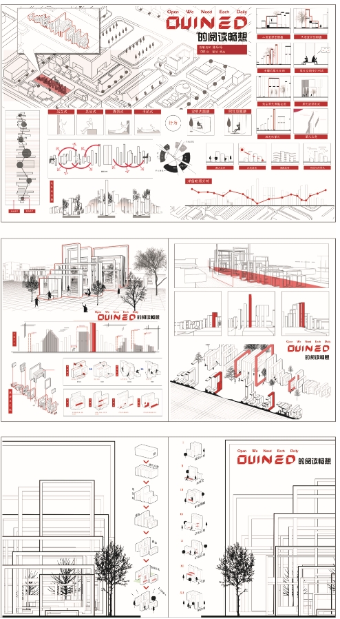 “Owned 的阅读畅想”选址位于湖北省武汉市武昌区湖北大学校内,拟在为学校师生创造一个开敞、自由、有设计感的阅读学习空间。设计以多米诺骨牌为灵感,通过不断调整体系中的各个组成元素以及它们的相互关系,研究以竖立几何空间形成的开放式建筑。