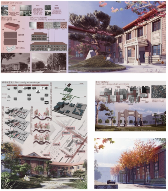 本次设计主题为“立足当代,延续习坎精神”,在“传承与共生”的视角下去营造湖北大学校园的标志性历史纪念景观。通过对老校门营造纪念性广场的恢复以及砖红色民国风格为主题的建筑改造,凸显庄重、古典、艺术的植物设计与配置方案,设计出具有湖大校园氛围,百年历史厚重感以及时代传承体现的纪念性空间。