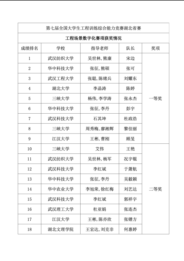 (此图为第七届全国大学生工程训练综合能力竞赛省赛工程场景数字化赛道获奖情况)